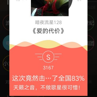 我唱的这首歌打败了全国41%的人,快来听听吧。